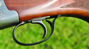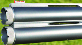 Interesting barrels and chokes apart, there is not that much to report with regard the mechanical design of the gun. The action, though almost rounded in form, is of typical Italian mid-market pattern under its surface, with stud pins at the knuckles and a full width bolt meeting a bite beneath the bottom chamber mouth. It is a trigger plate design (as most) with hammers powered by the usual helical springs. The safety and barrel selector on the top strap are well proportioned, the top lever is short but efficient in operation. The grey coated trigger blade of the inertia activated mechanism is adjustable.