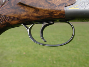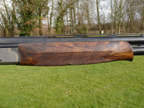 The gun definitely has the wow factor. It is strikingly handsome thanks to so called ëTri-woodí (a clever inking process that creates the illusion of exceptionally figured wood), sculptured actions fences, and action decoration that combines bold scroll engraving with well done gold accents and the STL logo on the walls of the action (and a VS on bottom). It was all quite flash, but not over the top. Not quite. The Italians seem to love this stylistic stuff. One has to acknowledge that they are masters of it.