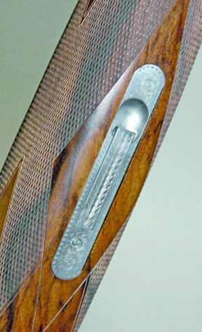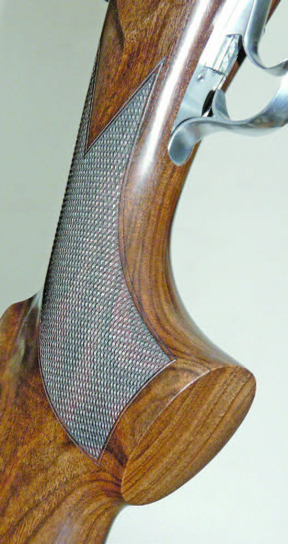 Move onto the top tang and you’ll find my only dislike. Echoing the stippling of the double-scalloped fences, the long top-lever has been finished with a filigree effect where the thumb presses against it. To my mind it doesn’t look right on this gun or others who insist on using this effect. I find it unpleasant against the side of my finger irrespective of the fact I wear gloves. On a competition shotgun nothing beats good, old fashioned deep cut cross-hatching such as that on the Pro Comp’s broad sliding safety come barrel order selector.