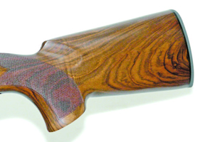 Slide the two parts from within their black, Fausti emblazoned jackets and you find some rather attractive semioiled walnut, nicely grained, well presented and most importantly exhibiting a high standard of fit. Whilst not the biggest fan of the Schnabel forend, the Pro Comp’s is slightly longer and fuller than normal with two large panels of fine cut checkering and a scroll engraved Deeley style latch. With an ideal amount of cast, the stock is a good, full sized sporter finished off with a solid soft rubber recoil pad; my only concern being the semi-pistol grip. Complete with a sensible angle and radius and finished with two large panels of close checkering it’s definitely hand filling, the palmswell of sufficient size to locate the hand, yet small enough to keep the gun articulated when required, it may well be slightly too large for the hands of smaller shooters.