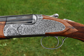 Before considering this further, let me just say a few words on the aesthetics. I can hardly talk about first impressions – I have had the test gun for some time – but I am sure that you will agree from the pics that this is an especially attractive gun with its great wood and profusely engraved sideplates. In fact, I would go as far as to say that this is one of the best looking guns that I have ever seen at the price point. I am not alone in this opinion, friends in the gun trade like Bob Battaglia of Park Street Guns near St. Albans, and Chris Potter, tell me they have been selling like hot-cakes (the 30” barrelled 20 bore version being especially popular). It’s an awful lot of gun for 2 ½ grand these days. There is another version, the Essex model, which is equally appealing with tight rose and scroll engraving in Purdey style and with colour case hardening.