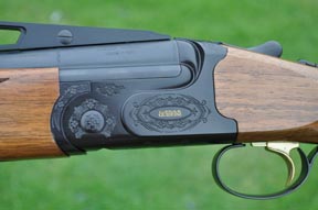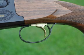 The blacked action of the Impact is decorated only with some light scroll. A central panel on each action wall has the Caesar Guerini in the middle, and, on the belly of the action the name Summit appears in gold too. I could find no mention of the special model name anywhere on the gun.