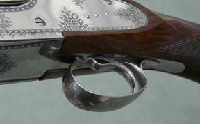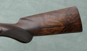 The deep trigger guard that sweeps back into a short bottom tang houses a fixed trigger – blade whilst the top tang maintains the wheaten pattern along with the short throw top – lever and manual or auto safety. Most notable are the deep cut fences that sweep down and out along the sides of the action effectively giving the surface an attractive degree of depth. Opening the gun immediately reveals the Boss – style action inspiration along with the physical characteristic of being easy to open and close. Intentionally built this way, unlike others the Hesketh doesn’t have to be ‘shot-in’, the relaxed attitude of the mechanism and bite purposely designed this way.
