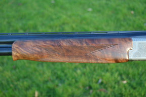 The stock is made from decent walnut (it has some fiddle back figure to it) and is of typical Miroku/Browning style. It was surprisingly long at nearly 15” and finished with a simple but good black ‘rubber’ recoil pad of about 3/4” in depth. It was a good length for me, but might be shortened without difficulty. I like the trend in modern guns towards longer stocks, especially if they have a straight cut to the rear where the pad is fitted rather than a concave – it makes modification in either direction simpler.