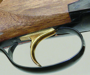 Further back on the top-tang the small manual safety sits complete with the barrel selector, the short bottom tang dominated by the black trigger-guard. Unusually, whilst the outer surface of the guard benefits from the same gloss finish the inner surface doesn’t, something of an oversight to my eyes especially since the London’s main competition continue the finishing surface over the entirety of their guards. Equally unusual is the fact that the gold plated trigger-blade isn’t adjustable, something of an oversight on a shotgun of this type.