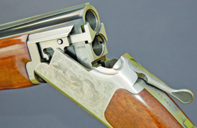 The Japanese guns have an inertia single trigger mechanism. The Belgian guns retain a mechanical system. There are significant differences of form. The machine-made stocks on the Japanese guns are usually a bit chunkier than those on the usually bespoke Belgian B25s. Another difference concerns barrel weight. The Belgian guns usually have lighter, thinner walled, barrels with fixed chokes, while most of the Japanese guns have multichokes in barrels which trumpet slightly at the muzzles to accommodate them and which are generally of heavier profile (though the barrels on the latest 525s have been lightened – see below). The differences in stocking and barrels gives the mechanically quite similar guns rather different handling qualities.