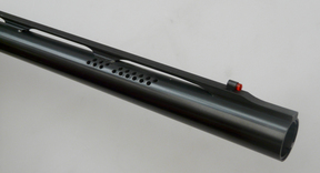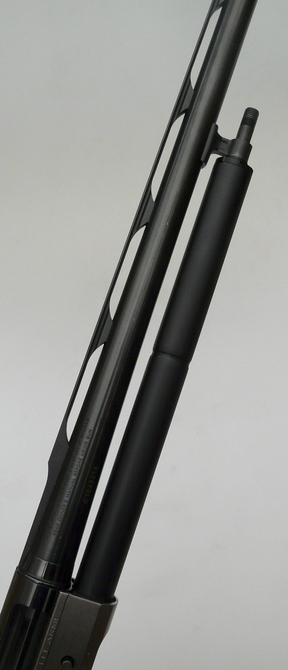 The gloss back 30” barrel comes ready ported, the two panels of exhaust holes starting three inches rearward of the muzzle. The effect of these series of small holes is to allow excess gasses that build up in the barrel behind the shot and wadding to vent before they reach the muzzle. Equally, by angling the holes back along the barrel the exiting gas actually pushes the gun gently downwards removing unwanted muzzle flip; the end result being more controlled shooting. Steel proofed for those who need it, the barrel is topped off by a raised 7mm vented rib that steps up just above the 3” chamber before flattening out again an inch before the muzzle.