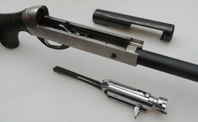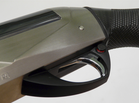 A real unique touch though is the two-piece alloy-steel combination receiver. Housing the familiar Benelli two-piece rotating bolt, on removal of the barrel the lower matte silver alloy section instantly parts company with the black steel upper which in turn means the bolt can be lifted clear with no effort, maintenance is easy and reassembly quick and idiot proof. Similarly, this slightly unusual design is more or less the transition stage between the standard style of receiver and Benelli’s revolutionary three piece Vinci. Designs aside, the bolt release sits in the usual place just below the ejection port, the bolt lock to the right front of the polymer trigger guard and the cross-bolt safety to the rear, so operationally its as traditional as any semi-auto comes.