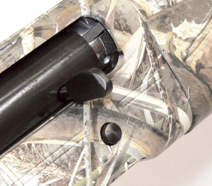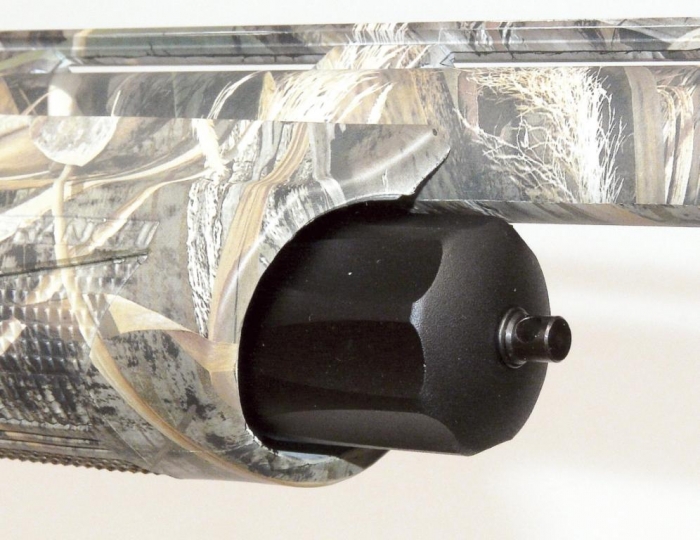 By sliding the barrel ring into the front of the forend, taking care to ensure the barrel ring flange seats correctly, lift the rear of the forend into position and then slide over the magazine tube as the barrel extension slides into the receiver. Similarly, the bolt must be in the forward or battery position for the barrel and forend to slide over the action spring and twin runner guide or once again, the gun won’t go together, the bolt needing to be drawn back and locked out as the three pieces finally come together. And be sure to dog the mag cap up as tight, otherwise it has a habit of backing itself off after a few shots.