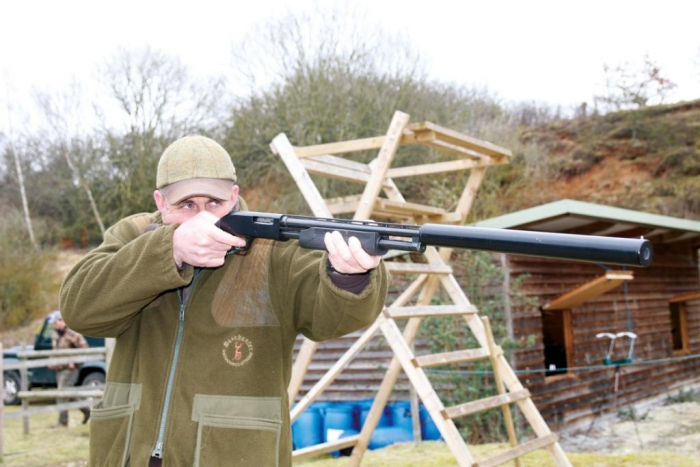 The fully moderated (Hushpower) model offers a full choke as standard. Length of pull (LOP) measures at 14” but is also available at 13” in the youth stock. Overall length, without the moderator, is 43” and 51” with the suppressed barrel. My advice is if you think you may want to use it as a standard shotgun too, then get two barrels, as I have done; switching them takes seconds. Also, firing a .410 with a ported barrel (without the moddy) is no fun, not to mention the muck that flies out of the holes too.