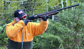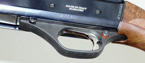 Loading is standard; open the action and drop the first shell in through the ejection port, then press the bolt release located on the left of the action. The remaining rounds are simply pushed in to the magazine from the bottom. I have to say the design of the shell lifter did seem rather rudimentary in its construction when compared to the rest of the gun. The safety is a cross bolt plunger at the rear of the trigger guard, with the overly small bolt lock catch forward of it on the left.