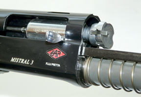 The mechanism is very much your standard gas/piston layout, with gas being tapped off the barrel and directed on to a sliding piston to cycle the action. Pietta have modified certain areas to their own requirements. The recoil spring that sits over the magazine tube is slightly longer than usual indicating an extended travel during recycling. Pietta remains singularly tight lipped regarding the action and its workings. Although these differences are visually marginal, they do make a significant improvement in use.