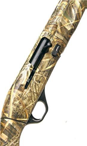 The action is an all-aluminium unit for strength and lightness and has a pleasing, almost Remington 1100 eske look to it. There are no provisions for sight attachment to the action top, just a shallow groove recess and semi faceted faces to the action sides. Again, camo-clad to match the barrel and stock, this action employs the inertia-type principle of operation.