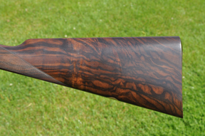 Well, it looks very good and feel fine when you pick it up – lively but not excitable is how I would put it. The level of finish is excellent. Blacking is of best quality, the scroll engraving pleases my eye (and everyone else who has seen the gun that I know), the stocking – a classic English straight grip – is by Stephan Dupille (one of the acknowledged masters of the craft). And, it goes without saying that all the machining and engineering appear first class as well.