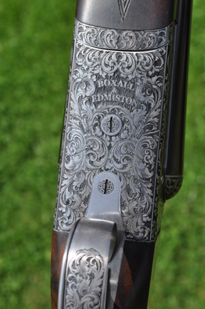 This new gun has 28” barrels (though 30” tubes are an option), double triggers, and a very high standard of finish. The action is silver polished and beautifully engraved by a sophisticated mechanical process that involves lasers and computers (and, oddly, is no quicker than traditional methods and requires a vast investment in high-tech equipment – one which Boxall & Edmiston have boldy made and obviously hope to recoup). The gun itself is made by very high tech machining processes too, but incorporates a lot of good ‘ol bench work. For example, the well figured stock is made traditionally, the monobloc barrels are struck by hand, and the gun is hand finished like one of London’s best.