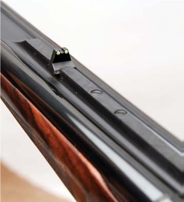 The rifle barrels are 23.75-inches long and superbly blued, with a deep, well-polished finish that are secured together by a central plain rib. You also have a raised quarter rib that houses the drilled and tapped top section for a quick detachable scope mounting system and at the front is dovetailed for the rear sight. This is a single height but drift/wind adjustment type, with two ears that are inset with green Day-Glo elements. These line up with the foresight’s red dot element set into the ramped foresight that is elevation adjustable.