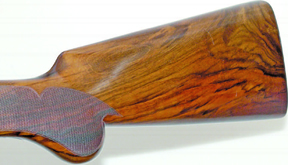 The action itself is lightly ornamented with small panels of scrollwork in amongst the chemically applied blues and browns, with the ‘La Bohemienne’ name running along the base of the action. One point of note is the two screw heads located above and below the script and the fact they are both at irregular angles to each other. It doesn’t take a lot to have the both running in parallel to the length of the gun and although just a small visual cosmetic anomaly that most would overlook, the offset heads of these and two others that affix the buttplate hint at a lack of attention in Pedersoli’s final stages of completion of the gun.