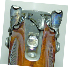 The hammers themselves are of the manual cocking, rebounding sort. By this I mean you manually cock each individual hammer by pulling back on each hatched spur with your thumb unlike others that roll back to full cock when the gun is opened. The La Bohemienne’s hammers and lockwork emit a satisfying click, confirmation that each hammer is drawn back, locked into place and ready to go. Likewise, after the shot has been taken, each hammer then sits about 1/8” back from the rear of the firing pins which means as their name implies, they bounce or rebound into a safe, de-cocked position.