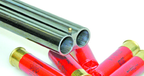 Looking closely at the action before the barrels are attached the disc-set strikers can be seen, as can the neatly executed cocking levers that protrude from the rounds, the whole well engineered and assembled. The chopper lump, 2¾” chambered barrels are jointed using a tapering 4-7mm concaved rib and are finished with fixed ¼ choke to the right, ¾ to the left muzzle restrictions and a small brass bead whilst the Southgate style ejectors are perfectly timed and throw the empty cases a remarkable distance when the wide gapped gun is opened after discharge. Taken as a whole, Powell’s small Monarch is a gem even before you’ve got round to loading it.