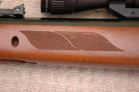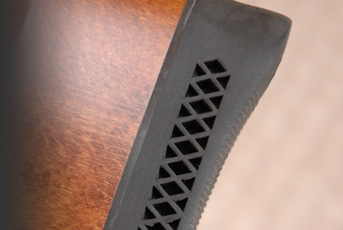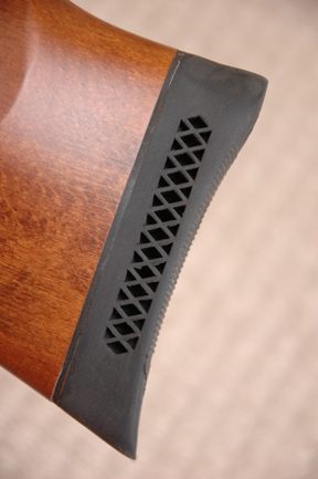 In use, minor criticism comes with the fact that the cheek-piece is more suitable for those open sights; being just a little low, and, whilst back on the stock, the rubber butt pad is curiously stiff - just lacking that luxurious feel of soft cushioning at the shoulder.