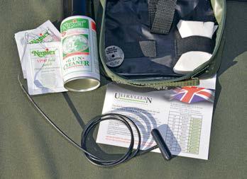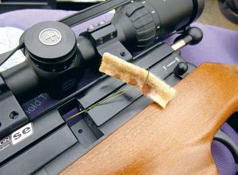 Normal routine maintenance can include cleaning the barrel, and whilst this can be far more important with a PCP to keep accuracy on song, after shooting in wet conditions, it is pretty vital with any gun; to prevent rust from forming. A simple pull-through is all that's required, formed normally from plasticcoated fishing trace wire. Some dedicated sets are available, such as from Napier, or Crown Saver, but the principle is the same.