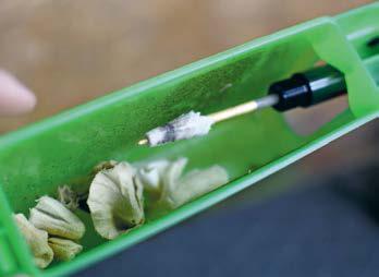 Faced with an awkward muzzle brake on a PCP, the trick is to take a drinking straw and split it down the side, then feed the cord inside it almost to the end. Feed the straw down the muzzle and into the crown. Hold it, and with the other hand feed the cord through. When it’s in the barrel, withdraw the straw, and carry on as usual. We are talking basics here, but this simple maintenance is enough to keep your favourite airgun ticking over. As the old adage goes, look after your kit as an investment, and it will look after you. Good shooting to all.