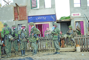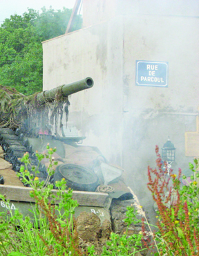 The Germans responded by bringing forward a recreated Panzer III tank to try and halt the Americans, but as in Normandy for real, it was too little too late. The fighting continued with machine gun fire, artillery, tank engines roaring and rifle fire cracking away. The rule for infantry in a battle is to win the fire fight by putting down as much firepower as possible. Despite being fired at from the buildings the Americans did win the fire fight and overwhelmed the German defenders.
