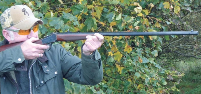 Dropping the combined trigger guard/lever brings the hammer back to half-cock, operates the extractor and lowers the breech block, exposing the breech to insert a cartridge. The rim of the cartridge needs to be pushed up to meet the extractor claw and then into the breech, which allows the action to close by pulling up on the lever. Pull the hammer back to full-cock and you are ready to go. When reloading, if the lever is pushed down smartly with the muzzle slightly raised the empty case falls clear of the action, otherwise the case is only extracted and needs to be removed with your fingers.