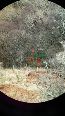 Single presses of the right-hand button change the brightness (six intensities), and if held down, the LRF goes into scan mode for targets that are moving. The only other option operated with the left button is a secondary display of the actual horizontal distance or angle to the target symbol, showing the actual angle you will be shooting at if looking up/downhill. This is very handy as the LRF has an inclinometer integrated. This means you can accurately work out your own rifle’s down-range trajectory based on corrections for this angle.