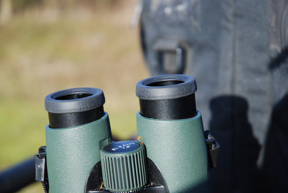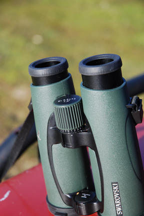 Though looking similar to the old ELs the new versions incorporate the latest Swarovison technology that includes field flattener lenses that give a true picture with no curvature at the edges. HD lenses minimize colour fringing (chromatic aberration), with a series of coatings to improve light transmission etc. Physically they are marginally smaller and lighter with a more ergonomic shape, but retain the familiar, green, rubber armour. They have also improved on the pull-up eyecups with a middle position that allows more versatility for glasses wearers. As before the focus ring is also used to set the individual focus/dioptric adjustments.