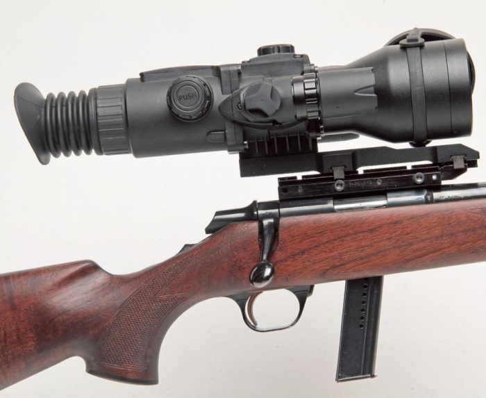 You have a lens of 42mm with a magnification of 4.5x and 9x digital zoom and the sensor which is a CMOS 768 x 576 offers a detection range 200m and field of view of 4.3 degrees. This mounts like a conventional scope or you can buy an optional one-piece mount for £66.95 with the actual sight being a great value price of £589.95.
