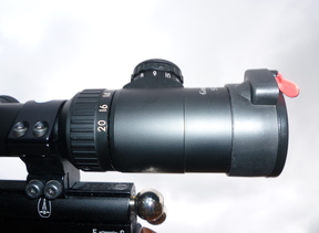 The magnification adjuster rotates smoothly from 5 round to 20 and there’s a raised ridge incorporated into it to allow for a sure grip even when wet. Mounted at 45° on the eyebell is an 11-position rheostat for illuminating the AMD reticule, MTC thoughtfully includes a spare battery. Getting the crosshair in focus is a simple affair thanks to the fast-focus eyepiece.