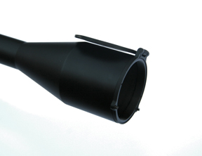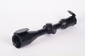 As you’d expect, of this robustly built scope it has a ‘hunter’ matt black finish and is waterproof, fogproof, shockproof and Nitrogen purged. The chunky eye-bell features fast focus ocular adjustment and a smooth but positive zoom magnification ring, both having aggressive outer ribbed lugs allowing ease of operation in cold weather and if wearing gloves. The ultra low profile cover capped turret adjuster’s have finger friendly serrated edge dials that offer a very precise ¼” MOA adjustment. Both click positively to each station offering 60 clicks per turn with 8 full rotations. Both windage and elevation turrets have Verniers and are lined and numbered on the outer face.