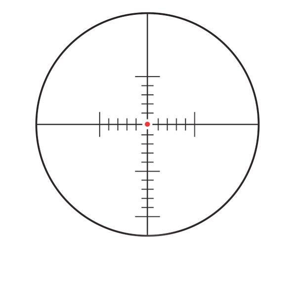Moving to the reticle, I really like the MOA2 design, with a floating central dot and equidistant lines surrounding. Of course, with many shooters dialling in range, the reticle is less important, but for those who favour holdover, there’s an abundance of aim/reference points to experiment with. The central dot can be illuminated too, with 11 stages of brightness, adjustable via the rheostat knob just behind the magnification ring.