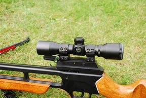 There are a number of specialist low powered crossbow scopes available in America. Typically they are around 3 to 4 mag and have xbow specific reticules, to allow the user to aim dead on at a given range, very similar to a Mil-Dot and exactly the same as the less well known ‘Christmas tree’ style reticules. The trouble is, everything from America tends to have a bit of a price tag attached.