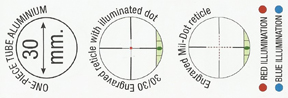 Both testers use a variant of the same design, glass-etched reticule set in the 2nd Focal plane, you have the option of Mil-Dot too. They share dual colour (red & blue) rheostat positioned on the left of the saddle, which sensibly it only illuminates the centre dot and gives five levels of brightness.