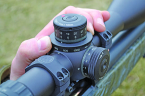 Nothing was overtly bulky and it became obvious the parallax location (after a few accidental illumination applications) was actually very convenient with most shooters I encountered, either left or right handed, quickly adapting to it and liking it. A fairly short depth of field meant it snapped in and out of focus sharply but parallax agreed with image focus, backlash wasn’t evident and the ranges even agreed roughly with the numbers marked on the dial. It’s probably not as friendly to gloved hands as a side mounted drum but the turret clicks were firm enough to prevent any accidental adjustments to the elevation although I wouldn’t say it was impossible.