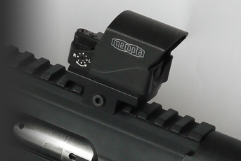 Meopta of the Czech Republic make some excellent optics, including a reflex-type red dot – the MeoSight II. There are two versions the 30 (3 MOA dot) and the 50 (5 MOA) but apart from that they are identical in size and shape. Weighing 1.9oz and measuring 2.1 x 1 x 1.3” the package is small and includes a plastic lens hood and soft cover. It does not however include the base. Power is supplied by 2 x CR1632 batteries with a quoted run time of 300-hours.