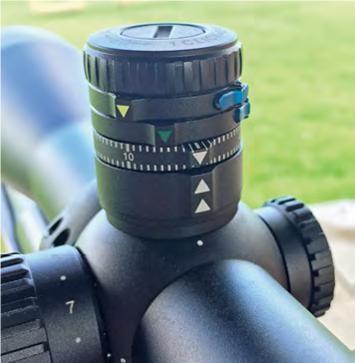 An option, purchased separately if ever needed at around £150, is a ballistic turret, which simply screws in place after removing the standard elevation turret. I tried this at the range. It is well designed, enabling the set zero to be changed by lifting the body against a spring and turning. You can also go 10 clicks past the zero, a sub zero if you like, equivalent to a change of -7cm at 100m for closer range shooting if required.