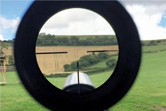 The reticle is a German no.4 with red dot in the centre (Meopta’s 4C) in the second focal plane (SFP). Simple and very effective, it’s a little heavier than I’m used to. But at Braces range just outside Bristol, the groups I achieved at 200m were no larger than with the much finer reticle of my Swarovski, Z6 atop the same rifle. The red dot has eight brightness settings, operated by a rheostat drum wheel on the left of the saddle; half clicks between the settings are ‘OFF’, so easy to preset a brightness and standby, although no auto off option is available. There are far more brightness settings on other makes of scope, but who really needs all those? I found settings 3, 4 & 5 suitable for all scenarios from bright sun to dusk. A fast focus at the ocular end rounds off the controls.