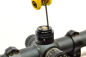 The Illumination switch clicks in-out for ON and OFF but the screw fit cap must be removed to alter the rheostat with a fine tipped screwdriver. There is no auto turn off but the system works effectively if not silently. Both elevation and windage are controlled by the new fast function turrets, 20 MOA available per turn with 5 complete turns allowing 100 MOA total adjustment in elevation and 60 for windage.