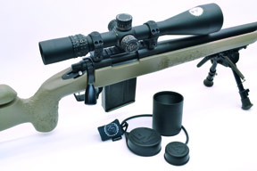 This is very generous, allowing either long range dialling for distant targets with or without an inclined scope rail or it will cope with a rifle offering difficult zeroing requirements. Individual clicks are ¼ MOA and well defined with a solid feel and no overrun. Zero stop is set by removing the elevation turret cap completely and then loosening four Allen screws to set the `stop` at zero. After nipping them up, you carefully reset the outer turret cap at zero too. It’s a workshop job rather than a field task and the instructions warn you not to completely remove any bolts but I like the fact you can leave a little spare `negative` travel into the elevation, yet still set your marker to `Zero`. All controls are solid aluminium, machined with knurling to aid adjustment and no signs of plastic or rubber appear anywhere except the elasticated lens covers supplied with the scope. A 75mm sunshade is also included.