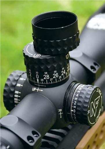You can add negative travel as a backup safety margin for the future and once set up on the AT-X in 6.5 Creedmoor (which incorporates a 20 MOA Picatinny rail), I retained 87 Minutes of further adjustment to stretch it out. The outer screw on the turret cap allows you to position the markings and the turret rotates anti-clockwise to add elevation. All the clicks are tactile and the turret is easily gripped because of the significant knurling.