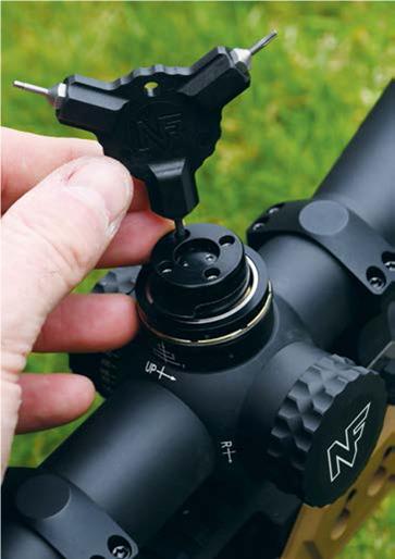 As well as a whole bag full of stickers, lens cloth and a 76mm sunshade, Nightforce supplies a neat, triangular Allen/Torx key tool to make all adjustments on the scope. There are detailed instructions to explain zero features and the ZeroStop mechanism. This uses a clutch system under the turret’s cap, with four screws to allow click-free movement when first setting the scope up.