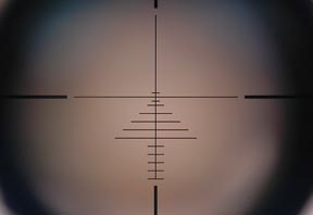 I found that target ranges read reasonably accurately, to within a few yards, up to the maximum FT distances of 50 – 55 yds. Where this Targetmaster scores for me is its LRX reticule. Set to x9 or 10 magnification, and the parallax turret to 25-30 yds, and it would be ideal to take on any Hunter Field Target course. The design is that of a Christmas tree with multiple, horizontal stadia of increasing width from top to bottom. So offering a lot of hold over and windage marks to employ.