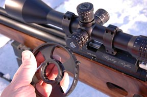 The Nikko I’m testing here is one of their relatively new Targetmaster range - the 5-20x 50 IR LRX to be precise and it really is quite a package. The remit is somewhat wider than just FT here, since the specification actually makes this scope particularly versatile. The IR stands for the obligatory illuminated reticule, whilst ‘LRX’ is the name of the reticule design. Included in the price are a screw-on sunshade, lens covers and an oversized sidewheel extender in a choice of 100 or 50mm diameter.