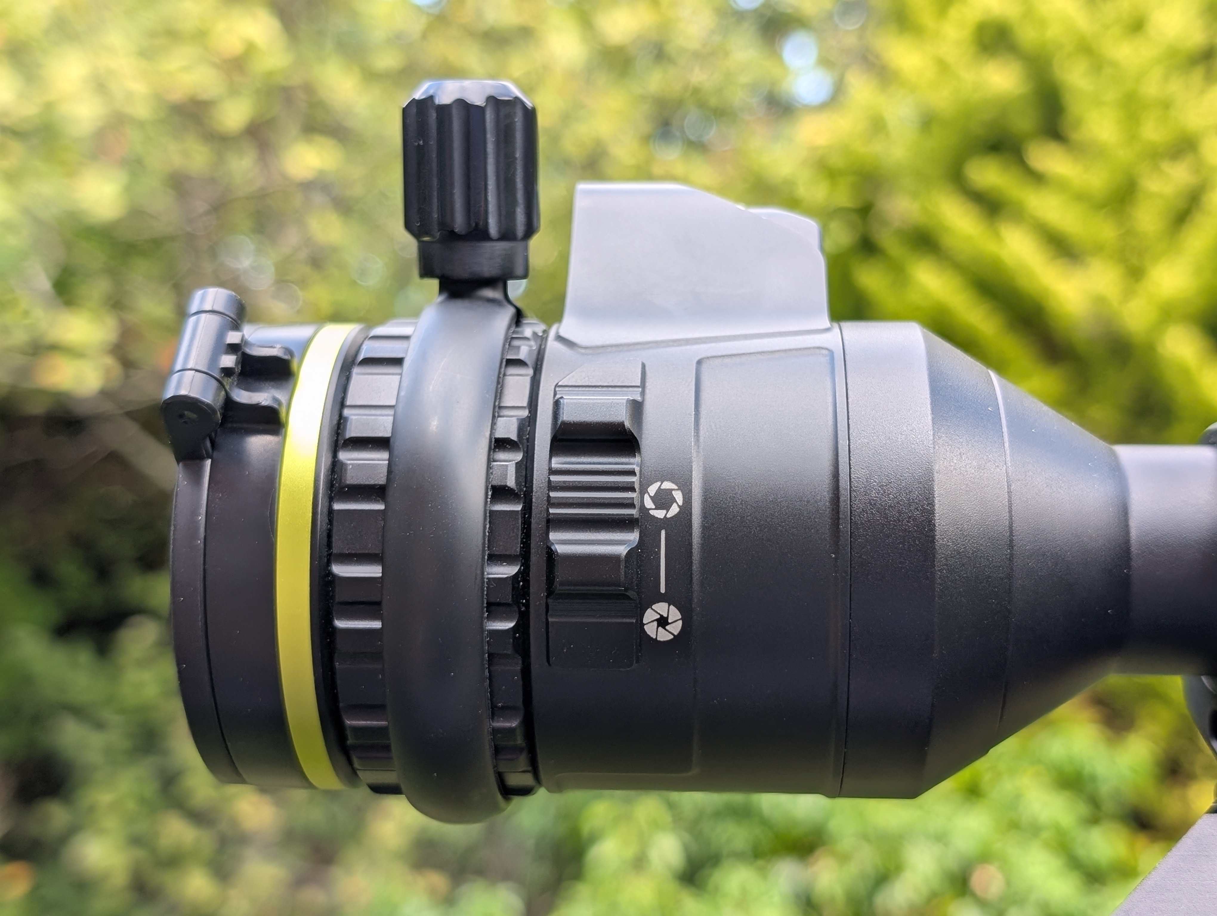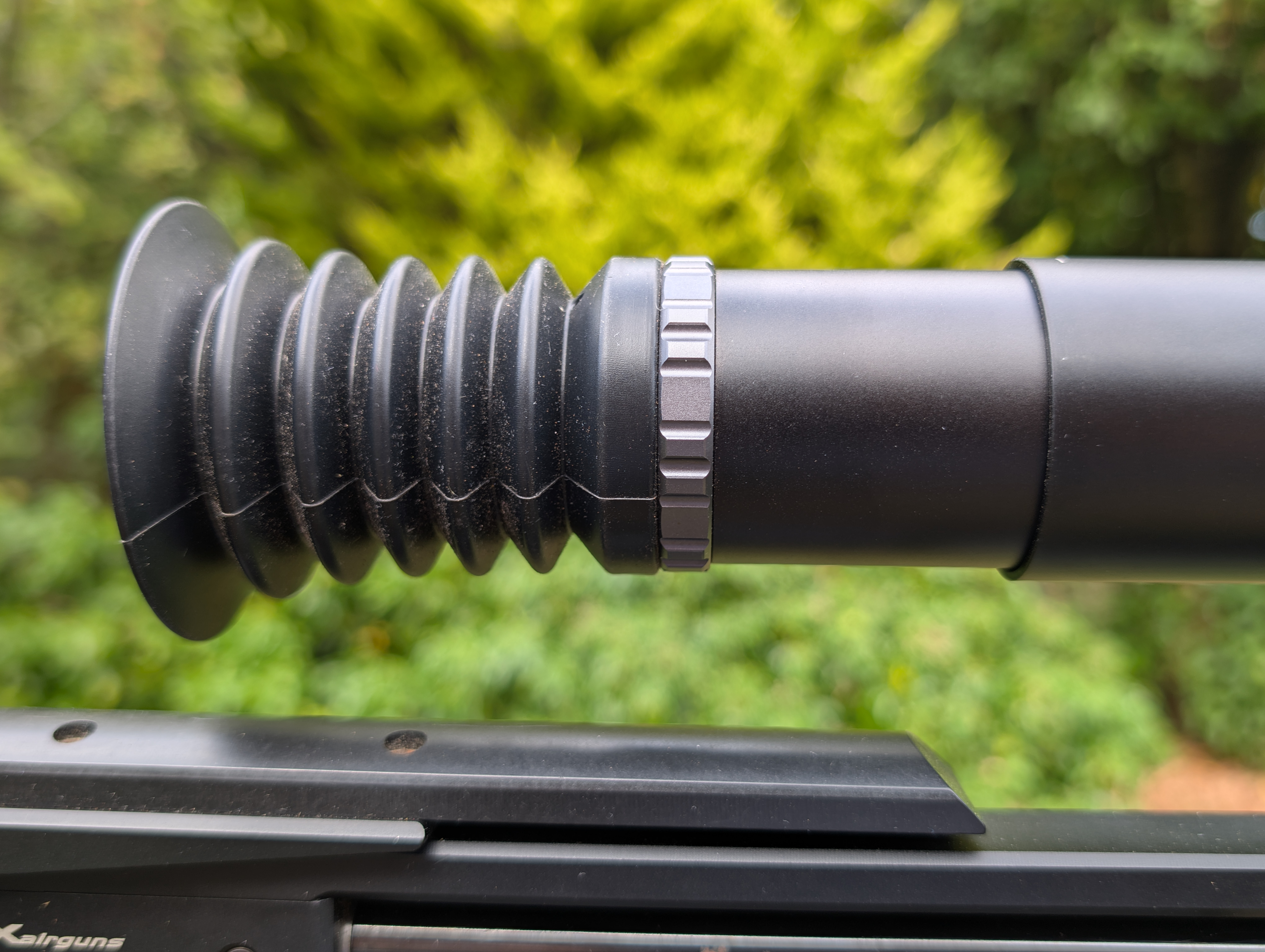 The controls are intuitive and well distributed around the scope. Analogue controls include the usual rings around the objective and ocular bells for focusing the target image, and the display, respectively, both of which were smooth and “goldilocks” tight. In a typically smart move that marries minimal expense to maximum benefit, Pixfra provides the Volans with a “coaster”, a twist-locking knob that can be positioned exactly where you want it around the objective bell to provide fast target focus.