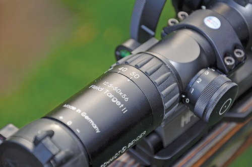 Top German optical company, Schmidt and Bender, threw their hat in the ring with a dedicated FT model some years back; but FT shooters are by necessity, a fastidious bunch, and despite some success on the competition circuit, a few reported problems circulated. Slight inconsistencies in range readings, caused by temperature change, is a problem that besets pretty well all the leading scopes to a greater or lesser degree, as different metals expand and contract at different rates; yet the boffins at S & B have been busy. The result is a new model from this iconic brand- the 12.5-50 x56 FT II Sport 3 model, on test here. Little is given away with regards to the internal changes, but having spoken directly with the factory, it has been confirmed that the optical design has been ‘re-calculated’.