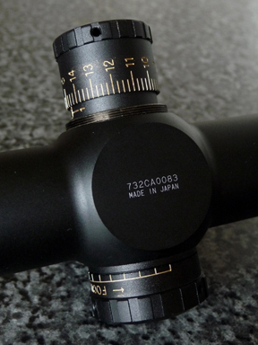 First impressions are of an imposing and solidly-constructed optic, finished in a sober but elegant slate grey set off by discreet gold detailing. Made in Japan, and based on a one-piece 30mm alloy tube, the SIII features target turrets with zero-able dials under screw-on covers, side-parallax, and a quick-focus ocular bell. It also comes with “bikini” type see-through lens covers, a 3” sun-shade, an Allen key for resetting the turret dials, a lens cloth, and a protective fabric cover.