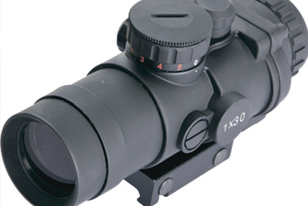 This rugged StrikeSystems ProOptics 30m sight is constructed in anodized aluminum with a black rubberized coating, featuring a highly visible dual colour (Red and Green) “Dot in Circle” reticle with 5-level adjustable brightness, as well as fully adjustable windage and elevation dials protected by screw off caps.